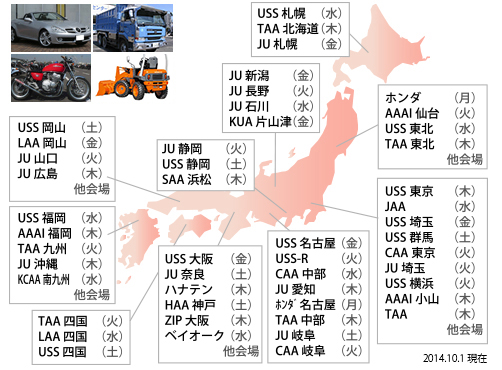 当店が参加できるオークションは全国140ヵ所以上。 それら会場の月間取引台数は50万台以上。「 欲しい車がなかなか見つからない・・・ 」そんな不満をお持ちの方は、是非当店にご相談ください。
